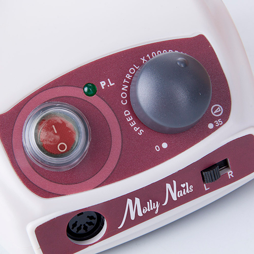 Broca super potente para manicure e pedicure, controlada por um sistema intuitivo de botões e interruptores.