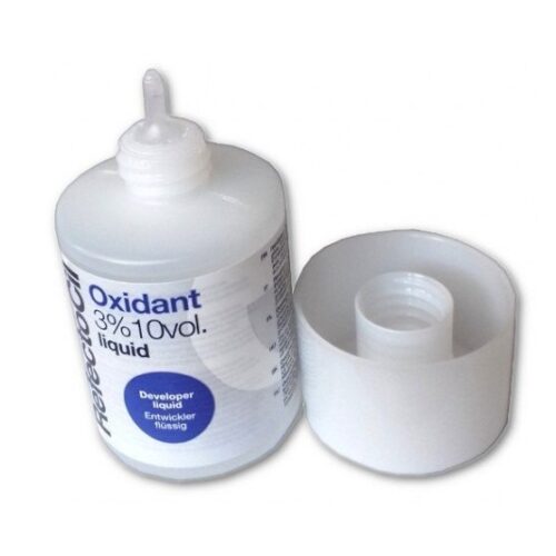 Um líquido estabilizador equivalente a 3% de peróxido de hidrogênio, em um prático frasco conta-gotas de 100 ml.